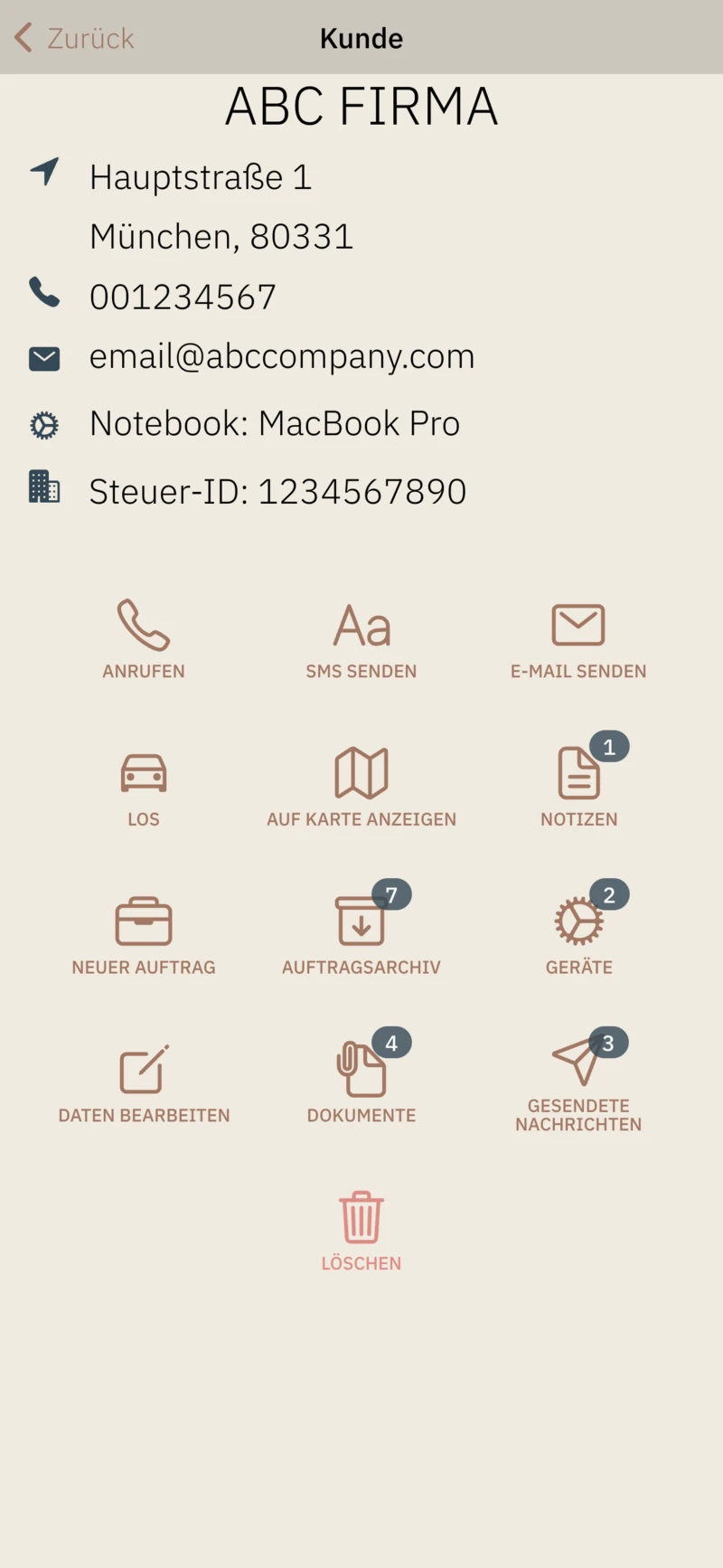 - Speichern Sie Kontaktdaten, weisen Sie dem Kunden mehrere Telefonnummern und E-Mail-Adressen zu,