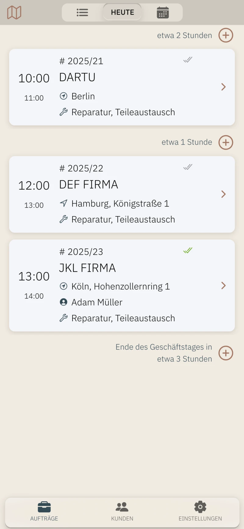 - Schnelle Vorschau der auszuführenden Aufträge für heute,