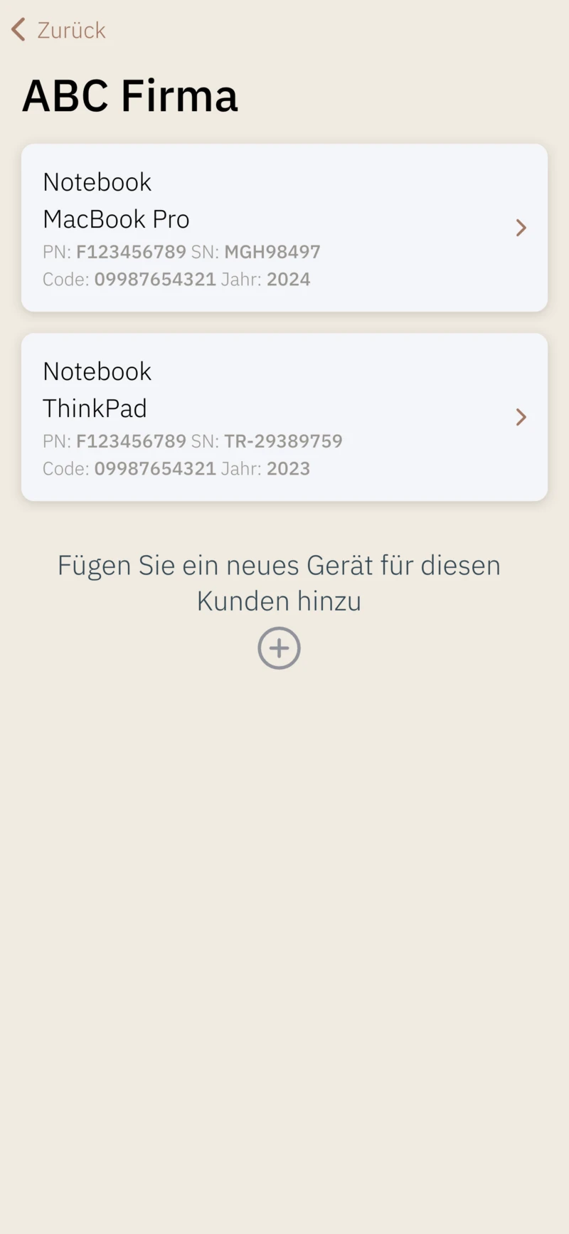 - Geräte des Kunden registrieren,